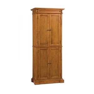 The Home Styles Furniture Oak Kitchen Pantry is made out of solid hardwood and veneers in the mult-step distressed oak finish. Four doors offered to a spacious pantry that includes two adjustable shelves permitting customized storage for greater utility, and also the pantry is created with enough depth to allow for cereal boxes! With a big storage capacity, the Home Styles Kitchen Pantry can be a perfect addition for your dining area or kitchen. Features: Kitchen Pantry construction of solid hardwood and veneers Distressed Oak finish Four doors Six shelves (four adjustable, two fixed) Cottage style Ready to assemble Specifications: Overall Dimensions: 72" H x 30" W x 16" D Weight: 129 lbs Shipping Carton Dimensions: 22.5" H x 22.75" W x 34.75" D Recommended Care: Clean having a soft, damp cloth Use a mild dishwasher soap mixed with water if necessary